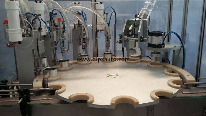 直線液體灌裝機本機為定量式自動充填機可使用在膏體、稀粘體的充填作業,在設計. 上采用機械為主的直線運動方式,利用PLC邏輯控制器及各種