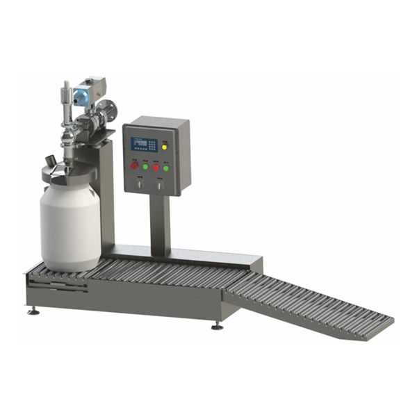 液體灌裝機主要由儲料斗、灌裝噴槍裝置、防爆控制柜、控制系統、稱重儀表、秤臺、升降裝置、氣動球閥、無動力輸送輥道,不銹鋼機架、壓蓋裝置等組成。