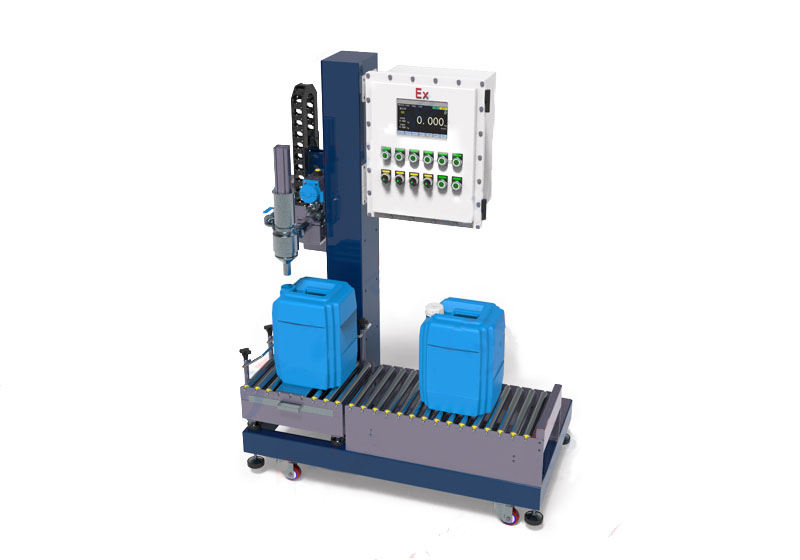 防爆型定量液體灌裝機是一種自動化程度極高的包裝設(shè)備,其主要功能是將液體物料自動灌裝成預(yù)定設(shè)置的重量。防爆型定量灌裝