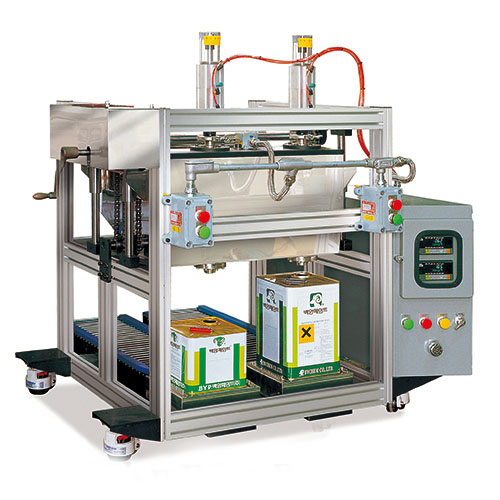 - 當(dāng)操作者坐著將空罐放在稱重臺(tái)上時(shí),使用服務(wù)料斗的原料完成定量灌裝。