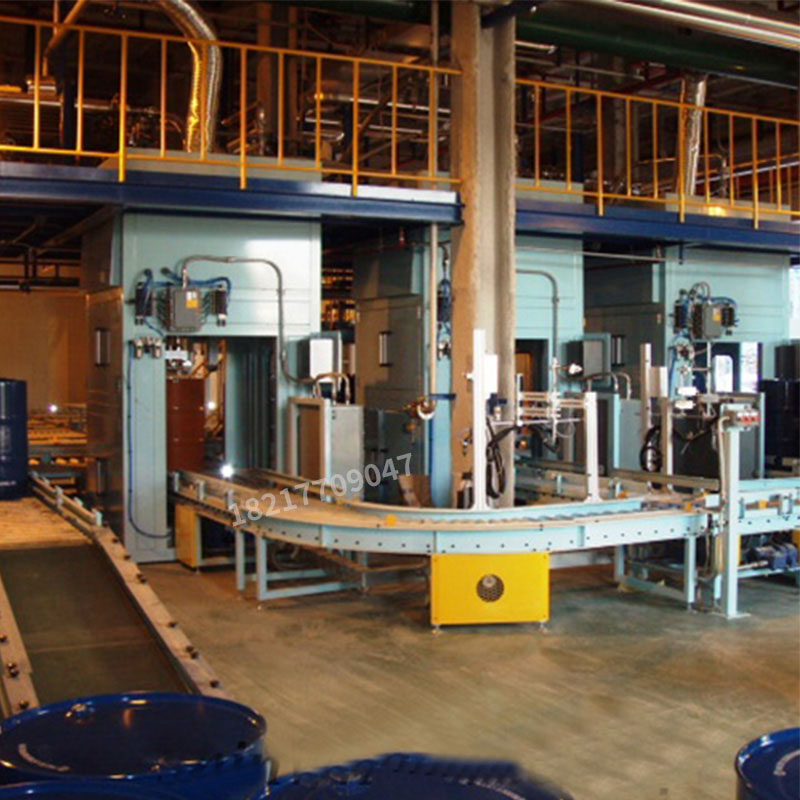 設計獨特的灌裝頭裝置易于操作,灌注快速、精確;并且灌裝機大限度地保證灌注完畢時殘液的滴漏。操作時,操作者先將空桶開蓋放置在空桶暫存區!輸送線自動輸送至灌裝工位,液體灌裝機自動對口。然后打開灌裝閥門,精確地雙速灌裝;灌裝結束,灌裝秤頭自動提升至桶外,滴漏盤自動接至灌裝頭底部灌裝完成,輸送線啟動自動將成品桶輸送至鎖蓋區,人工鎖蓋完成自動輸送至成品區,叉車叉走成品桶整個灌裝流程結束!