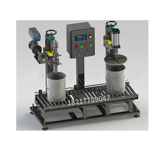 ◆操作時,操作者先將空桶放置空桶區按下啟動按鈕,空桶將自動輸送到相應的灌裝磅臺上,系統自動定位捕獲桶口,當桶口對準灌裝頭,