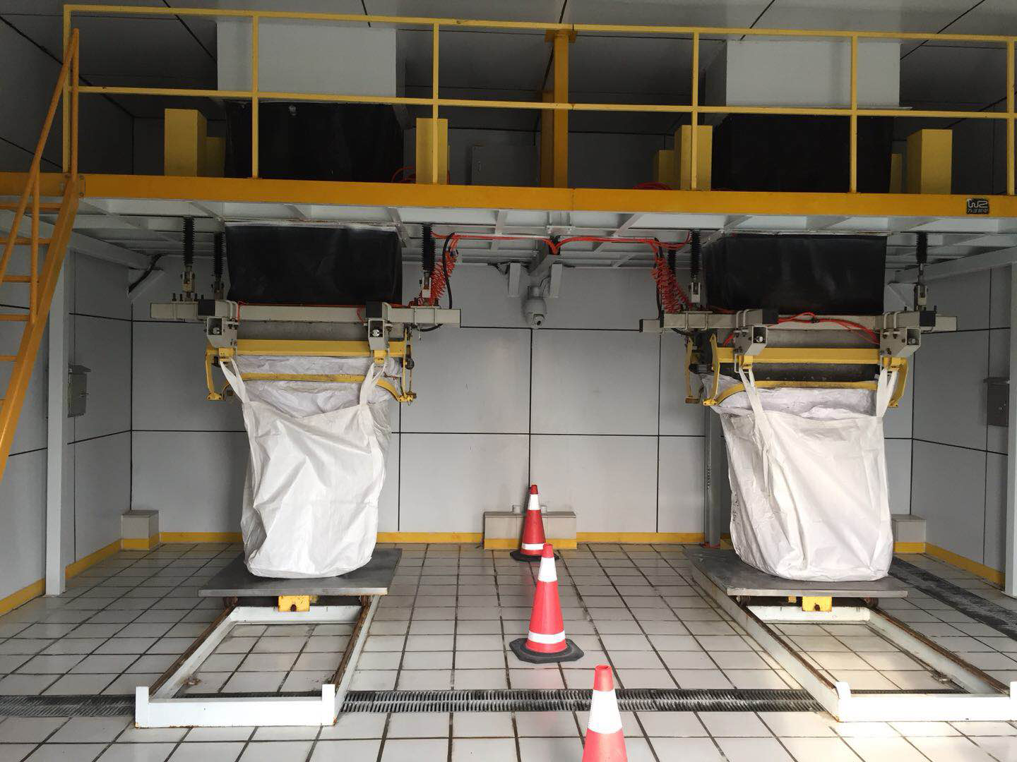 噸包裝袋袋口系帶調整,利于叉車或行車起吊碼垛或者裝車。