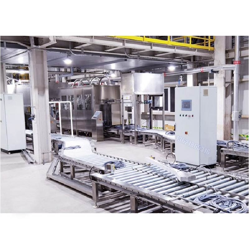 操作流程:人工開蓋將空桶放在輸送線上,輸送線啟動,自動輸送至灌裝工位,自動對口自動灌裝,首先進入快速落料,到達一定重量(設定的小料重量)時轉換為慢速落料,當重量到達目標值時停止落料,計量完成即灌裝完成。當灌裝完成后,自動輸送至成品區人工鎖蓋,叉車移走成品桶,灌裝流程結束!