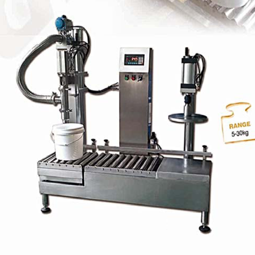 Chemical liquid filling machineSemi automatic PLUG & FILL series weight filling machine for weight filling of 1 to 60 liter containers.