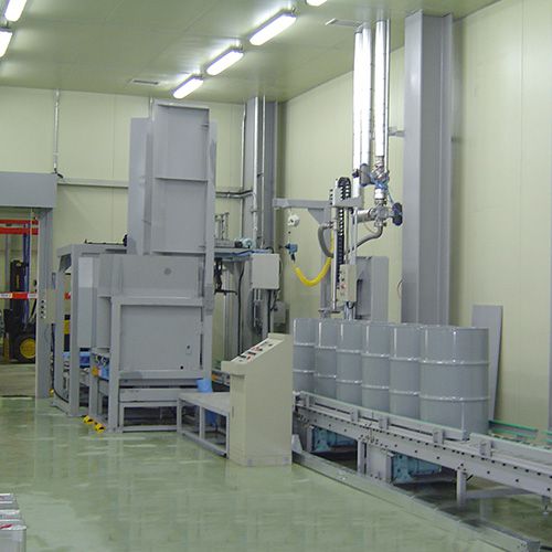主要特點- 半自動圓桶樹脂灌裝機與圓桶碼垛機組合安裝運行案例- 一名司機每小時灌裝機多工作 40 個鼓- II區防爆場所示例 標準規格1) 充電容量:0~300Kg/桶2)充電速度:40桶/小時3)灌裝精度:0~+0.2%