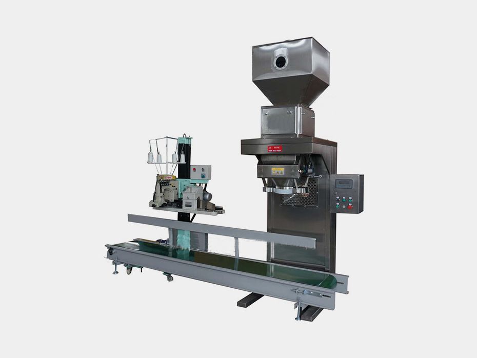 顆粒包裝機又名重力定量包裝秤/包裝機,其原理是:因為需包裝的顆粒物料流淌性較好,利用其自身重力進行給料,配合稱重模塊、夾袋機構、電氣系統、氣動系統等實現自動定量包裝,一般需配套輸送縫包機(線縫)